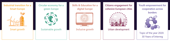 Em 2020, os Prémios RegioStars centram-se em cinco domínios fundamentais para o futuro da política regional da UE: